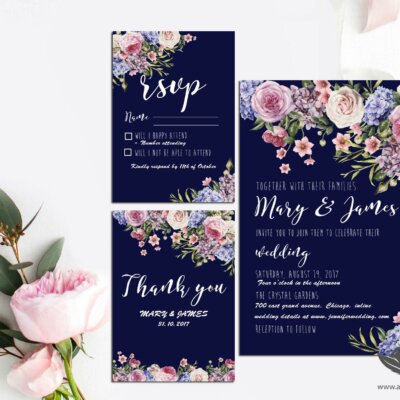 Floral Wedding, Boho Wedding Invitation Set, Rustic Wedding, Tribal Wedding Invitation, Watercolor Floral Invitation Suite || WFLO_3