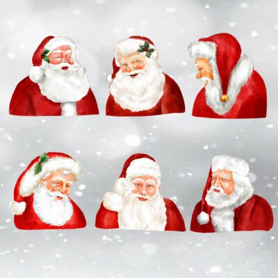 Santa cute Clipart Collection, Retro Santa Sketch Merry Christmas, Santa Sublimation Transfer Design, PNG Flie, Santa hand painted PNG | PESR_01