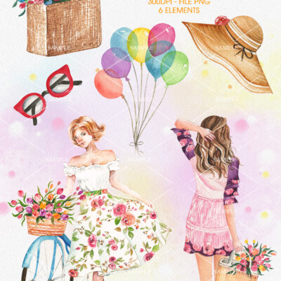 This set of high-quality hand-painted watercolor “Autumn Girls Clipart”