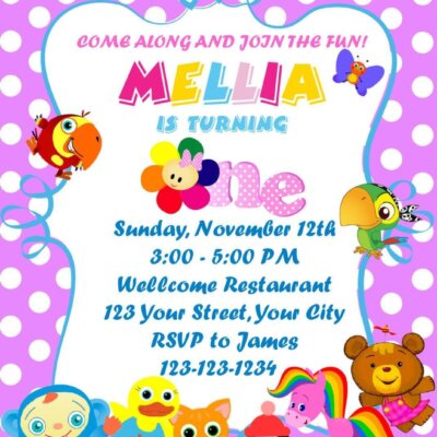 I DO not change colors, or change wording format. I customize this format, as shown, with your party info ONLY. If you want it customized with more than the party information, please message me for custom pricing.