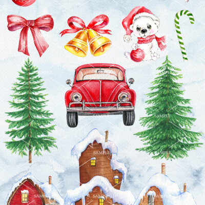 This set of high-quality hand-painted watercolor “Christmas Clipart”