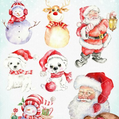 This set of high-quality hand-painted watercolor “Christmas Clipart”