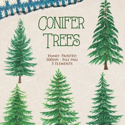 Christmas Clipart, Watercolor Clipart Spruce, Pine, Conifer trees, Watercolor Pine Trees Clipart, Watercolor Forest, Winter Wedding | WCCC_41