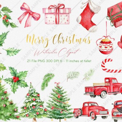This set of high-quality hand-painted watercolor “Christmas Clipart”
