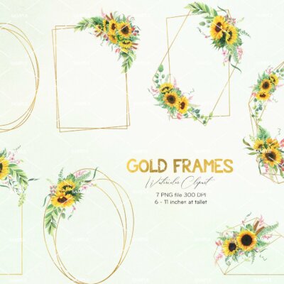 This set of high-quality hand-painted watercolor “Frames Clipart”