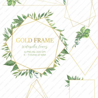 Clipart Frame Greenery, Watercolor Greenery Geometric, Frames Clip Art Greenery, Branchy Frames, Invitation Green Leaves | WCFR_09