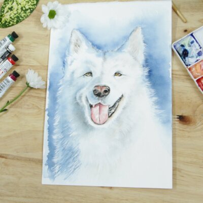 Custom Pet Portrait Watercolor, custom dog portrait, pet memorial, painted pet portrait, custom dog art, personalized pet portrait | WCDO_02