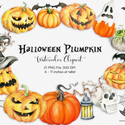 This set high-quality hand-painted watercolor “Pumpkins Halloween”