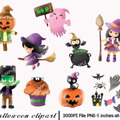 This set of high-quality hand-painted watercolor “Halloween Clipart”