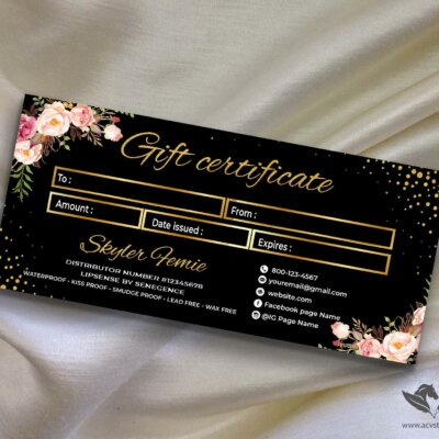 7. Gift Certificate instant (3.5 x 2 _&_ 8.27 x 3.74 inches) – 1 file