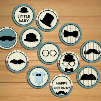 7. Cupcake toppers 2: 12 template, Size: 2.5 -3.5 inch, Sheet size: (8, 5 x 11 inch)