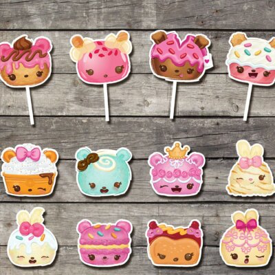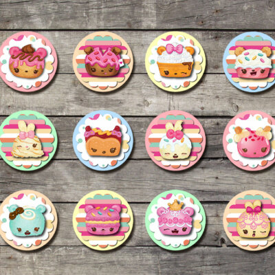 7. Cupcake toppers 2: 12 template, Size: 2.5 -3.5 inch, Sheet size: (8, 5 x 11 inch)