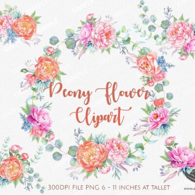 This set of high-quality hand-painted watercolor “Peonies Clipart”