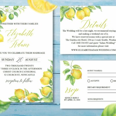 Lemon Wedding Invitation Template Download, Printable Watercolor Citrus Invite, Italy Invitation, Instant Download, Templett PDF || WEIN_71_03