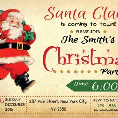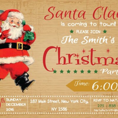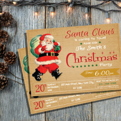Retro Santa Christmas Party Invitation, Retro Christmas Invitation, Santa Christmas Party Invitation, Christmas Party Invitation