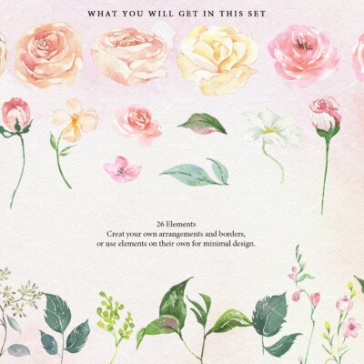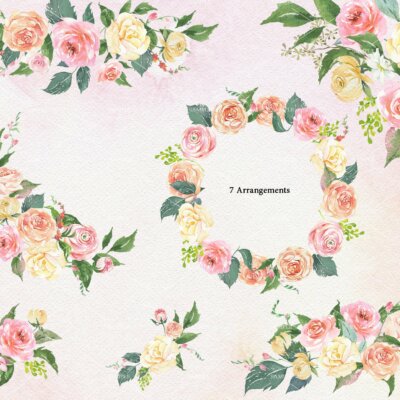 This set of high-quality hand-painted watercolor “Rose flower Clipart”
