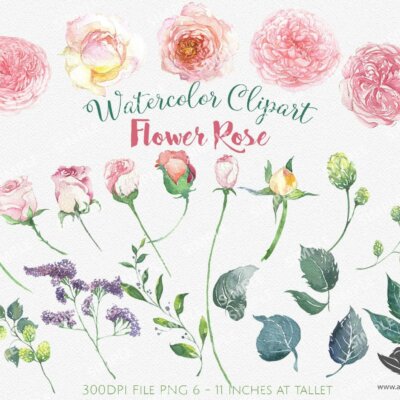 This set of high-quality hand-painted watercolor “Roses Clipart”