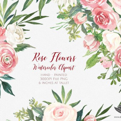 This set of high-quality hand-painted watercolor “Roses Flower Clipart”