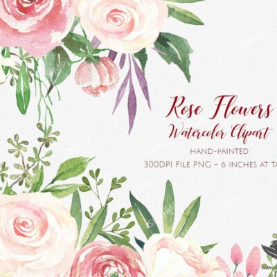 This set of high-quality hand-painted watercolor “Roses Flower Clipart”
