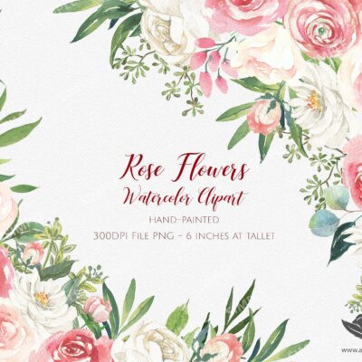 This set of high-quality hand-painted watercolor “Roses Flower Clipart”