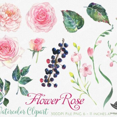 This set of high-quality hand-painted watercolor “Roses Clipart”