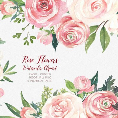This set of high-quality hand-painted watercolor “Roses Flower Clipart”