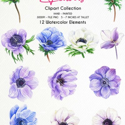 This set of high-quality hand-painted watercolor “Poppy Clipart”