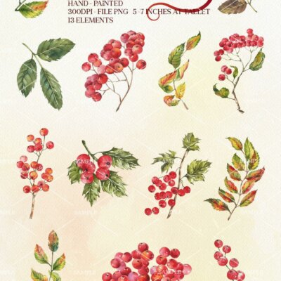 This set of high-quality hand-painted watercolor “Autumn leaves Clipart”