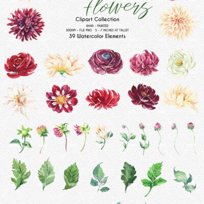 This set of high-quality hand-painted watercolor “Dahlias Flower Clipart”