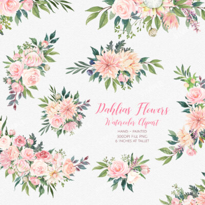 This set of high-quality hand-painted watercolor “Dahlias Flower Clipart”
