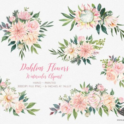 This set of high-quality hand-painted watercolor “Dahlias Flower Clipart”