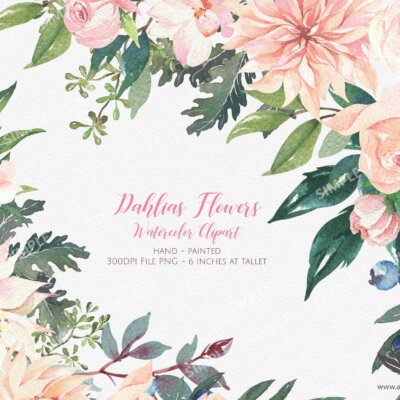 This set of high-quality hand-painted watercolor “Dahlias Flower Clipart”