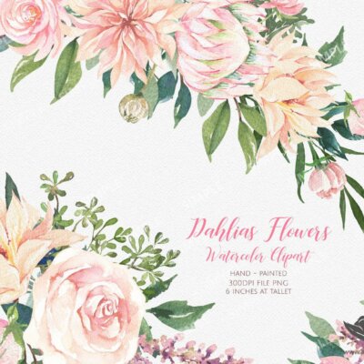 This set of high-quality hand-painted watercolor “Dahlias Flower Clipart”