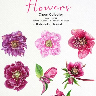 This set of high-quality hand-painted watercolor “Ranunculus Clipart”