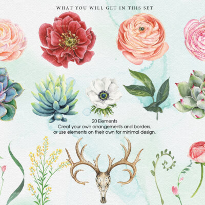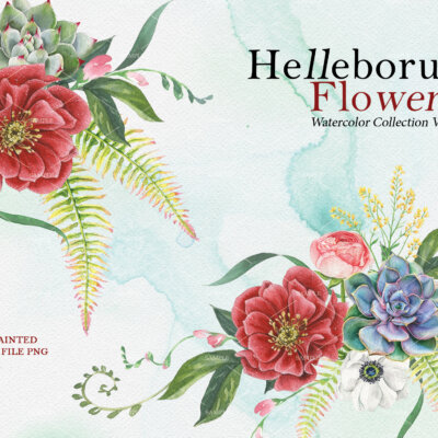 This set of high-quality hand-painted watercolor “Helleborus Flower Clipart”
