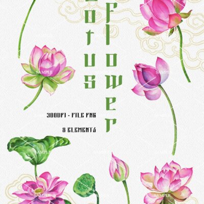 This set of high-quality hand-painted watercolor “Lotus Clipart”