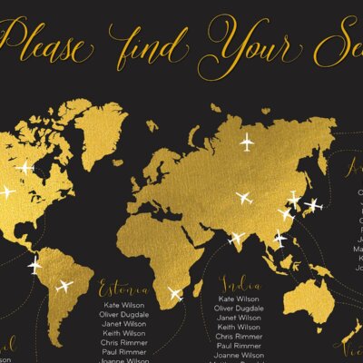 Be the first to review “Wedding Seating Chart, RUSH SERVICE, Gold World Map Plane Travel Theme Reception Poster, Digital Printable File Wedding Table Plan || WESW_12”