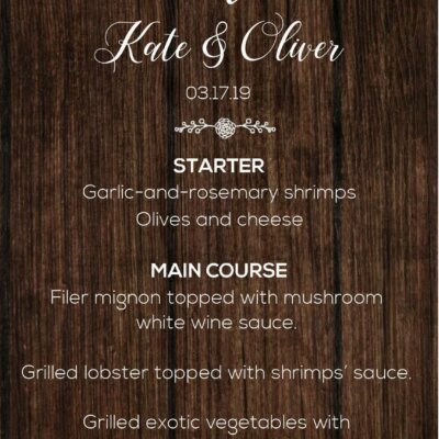 + The list file will receive as below 1 file wedding menu with size 4×9 inches