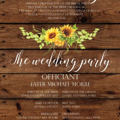 . Wedding program: 5×7 inches